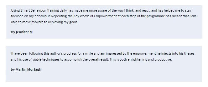 DISCLAIMER: I am not a licensed psychologist or specialist healthcare professional. My services do not replace the care of psychologists or other healthcare professionals. Please note that I can’t take any responsibility for the results of your actions, and any harm or damage you suffer as a result of the use, or non-use of the information available www.smartbehaviourtrainer.com and available from www.lulu.com. Please use judgment and conduct due diligence before taking any action or implementing any plan or practice suggested or recommended on www.smartbehaviourtrainer.com and available from www.lulu.com